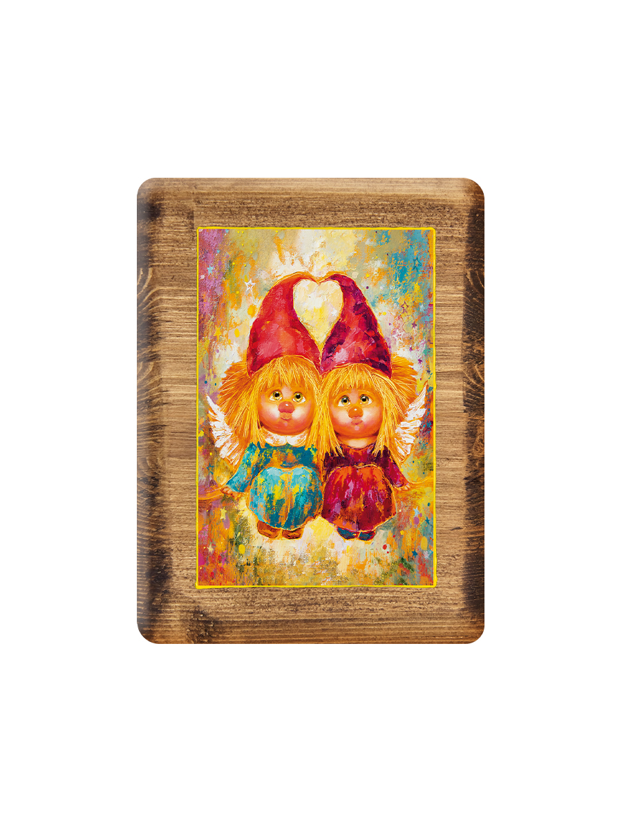 "Ангелы-хранители любви" Жикле на дереве 15х20 см