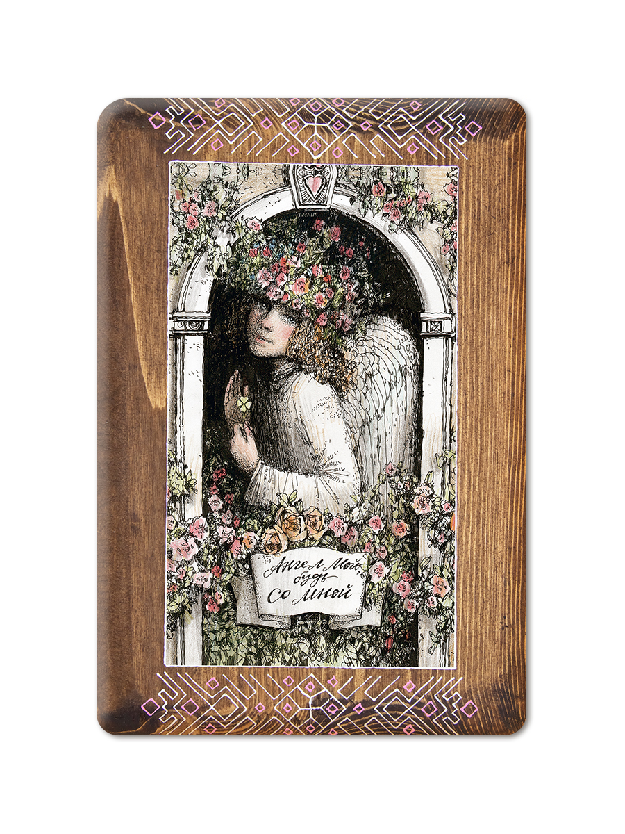 "Ангел мой будь со мной!" Жикле на дереве 20х30 см