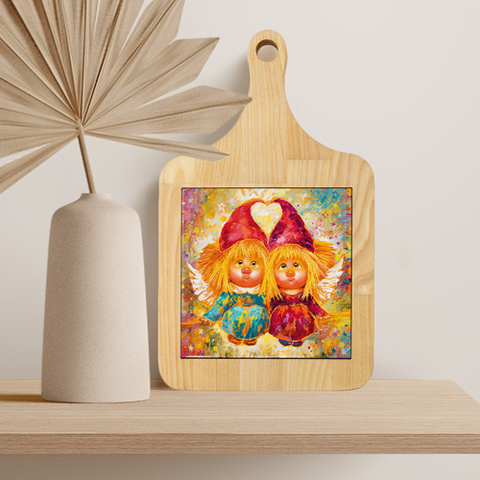 "Счастливые Ангелы". Жикле на холсте в расписной раме 30*30