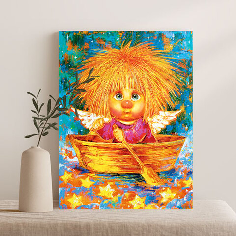 "Добрые Ангелы" В. Кудряшова Жикле на холсте в расписной раме 18*24