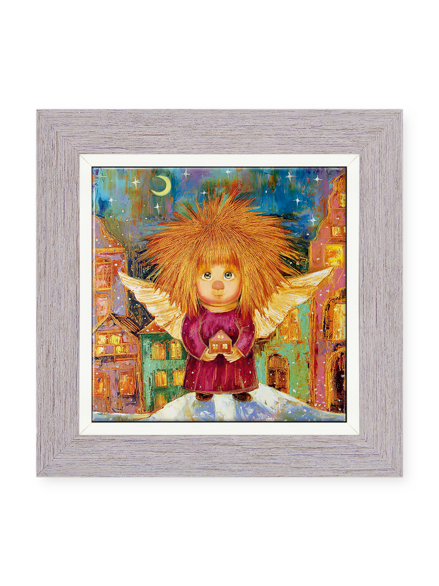 "Ангел с теплым сердцем" Керамика в багете 15х15 см