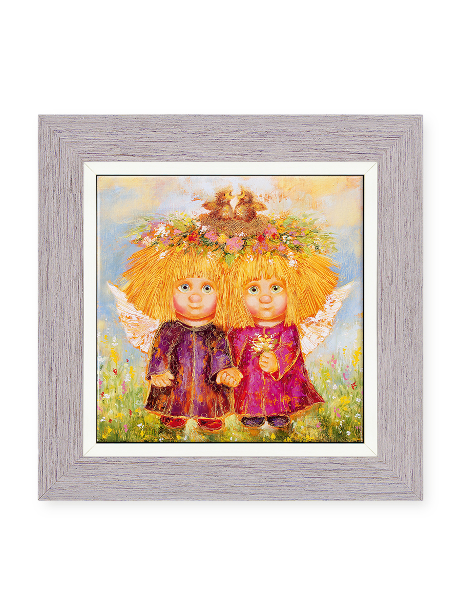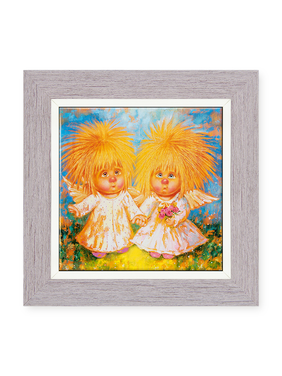 "Добрые Ангелы" В. Кудряшова Жикле на холсте в расписной раме 18*24
