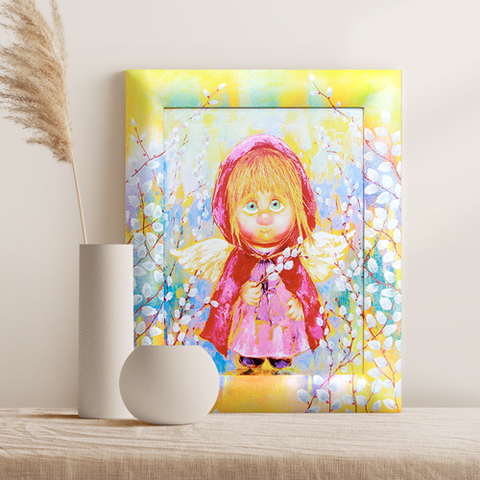 "Добрые Ангелы" В. Кудряшова Жикле на холсте в расписной раме 18*24