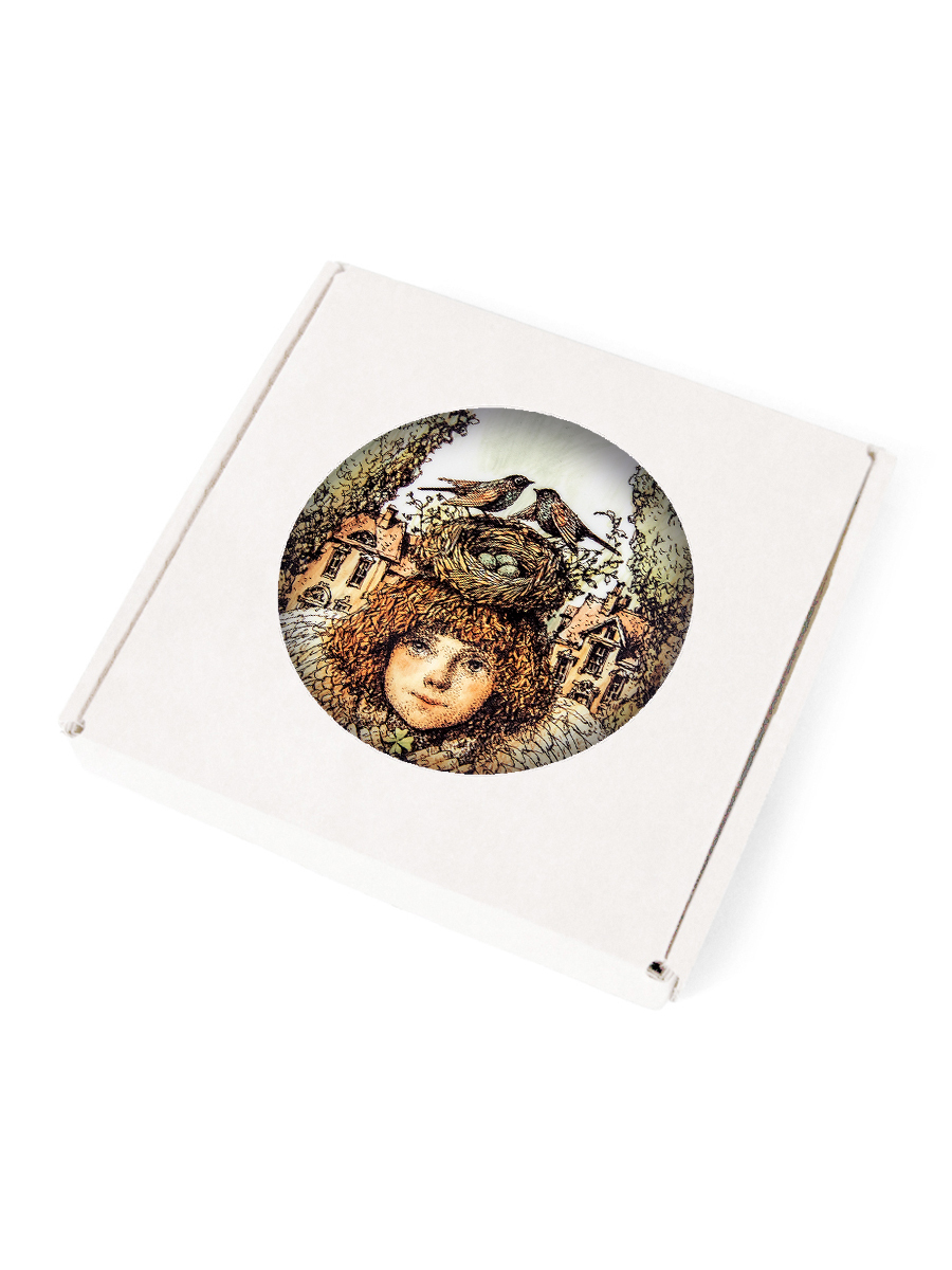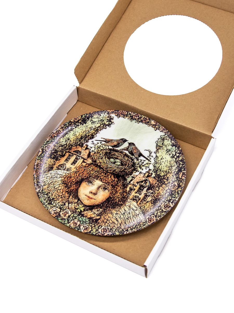 Тарелка из классического твердого фарфора в подарочной упаковке с крючком.