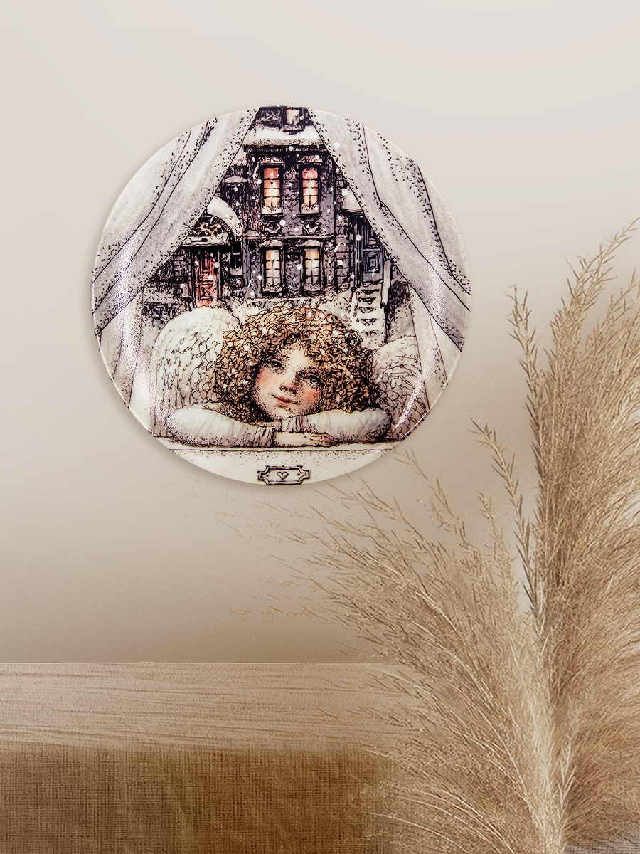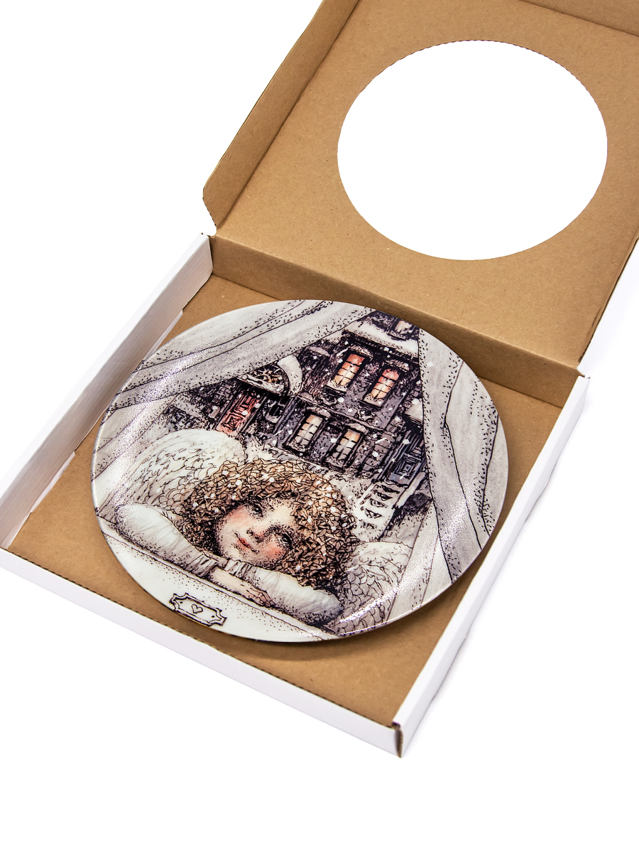 Тарелка из классического твердого фарфора в подарочной упаковке с крючком.