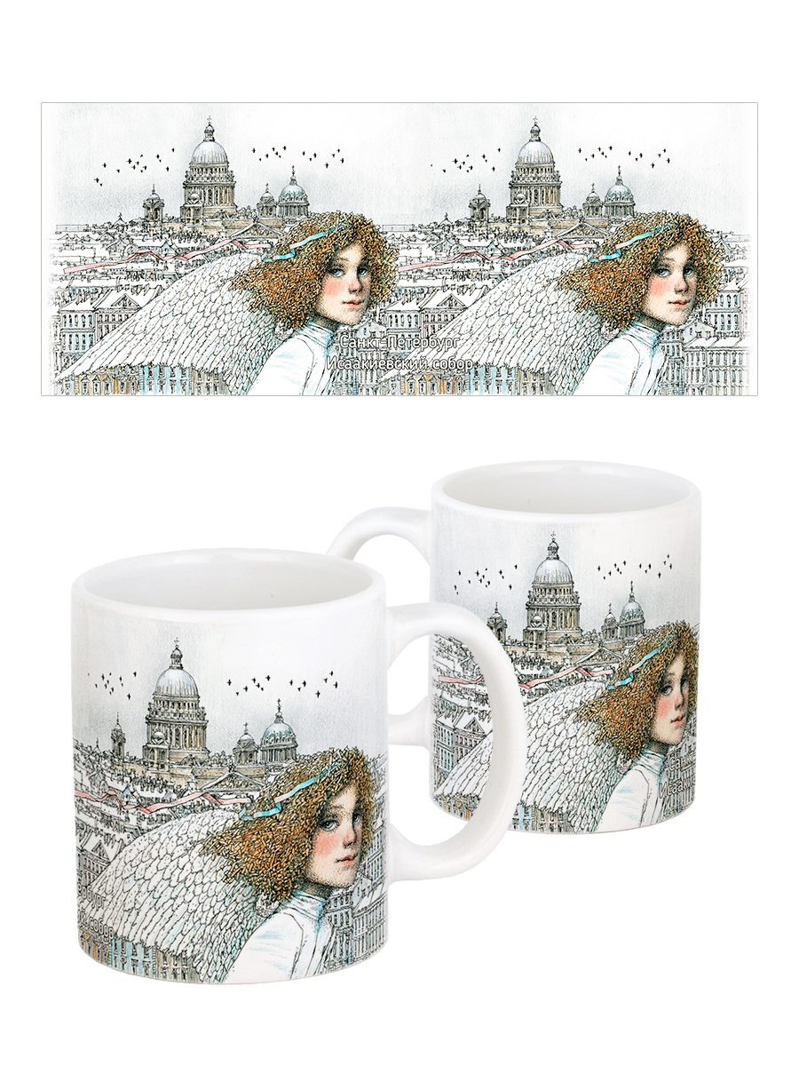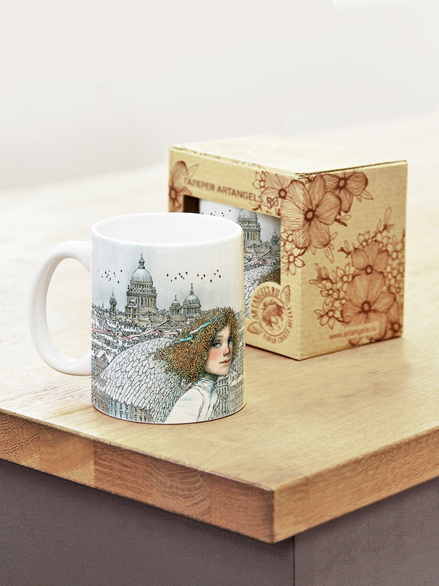 Керамическая кружка с ангелами, в подарочной крафтовой коробочке.