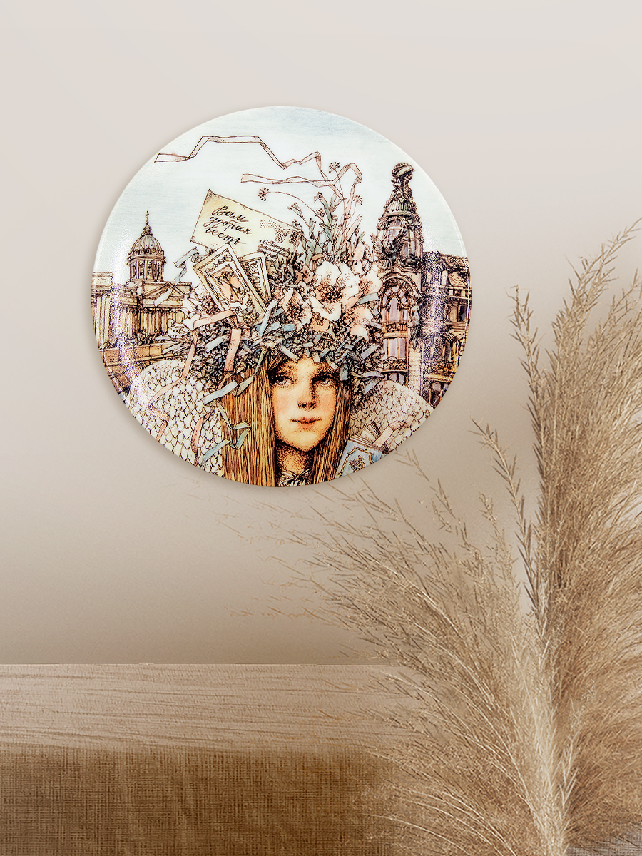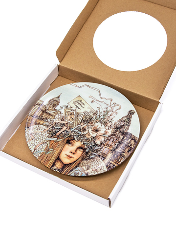 Тарелка из классического твердого фарфора в подарочной упаковке с крючком.