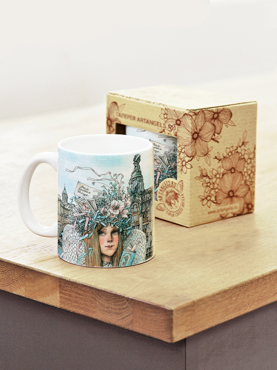 Керамическая кружка с ангелами, в подарочной крафтовой коробочке.
