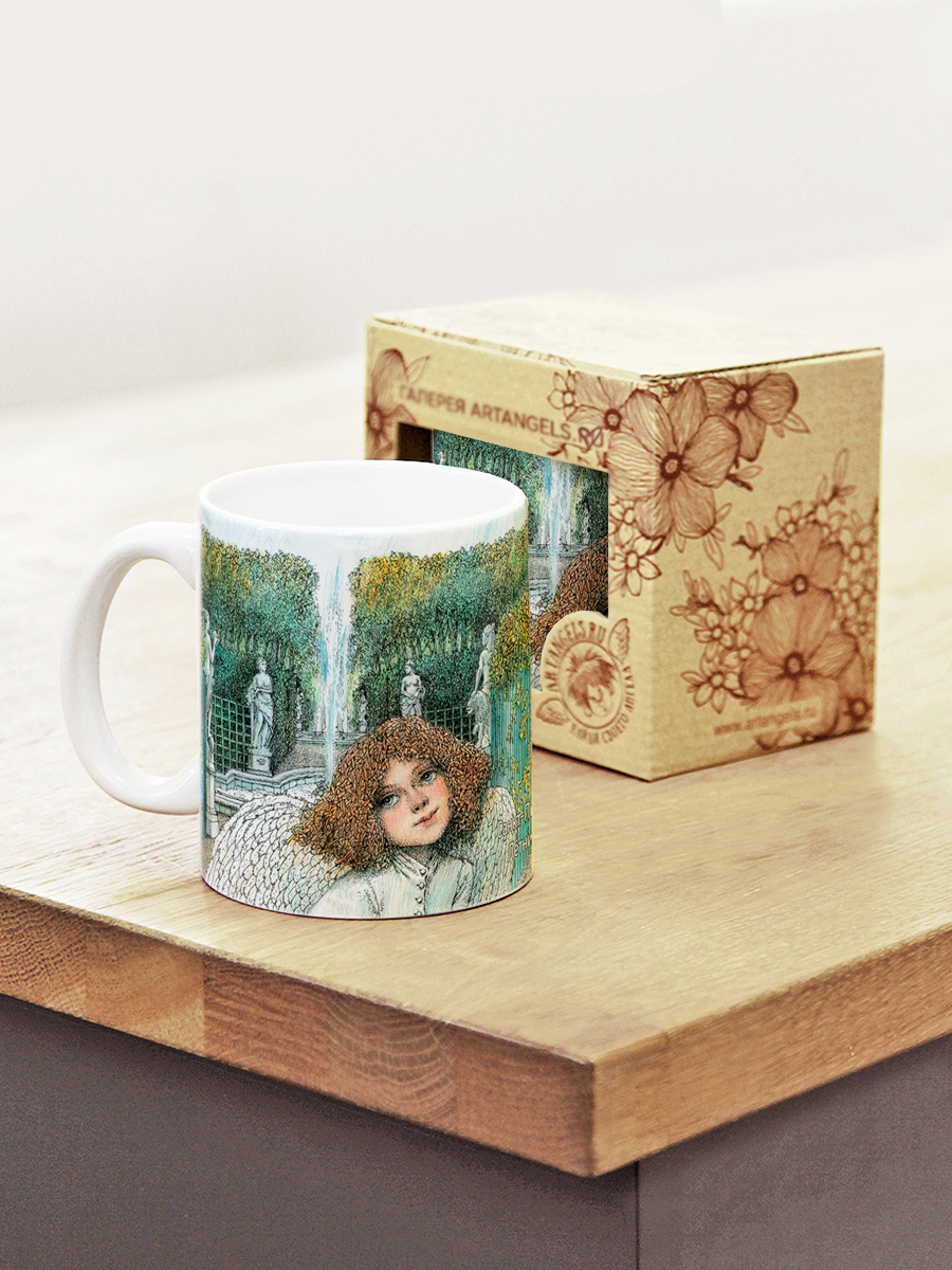 Керамическая кружка с ангелами, в подарочной крафтовой коробочке.