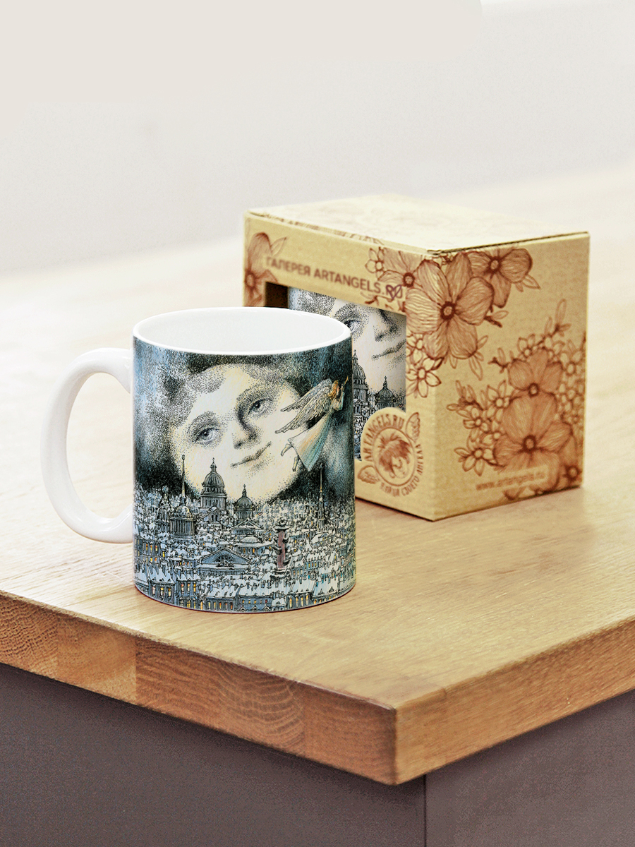 Керамическая кружка с ангелами, в подарочной крафтовой коробочке.