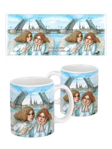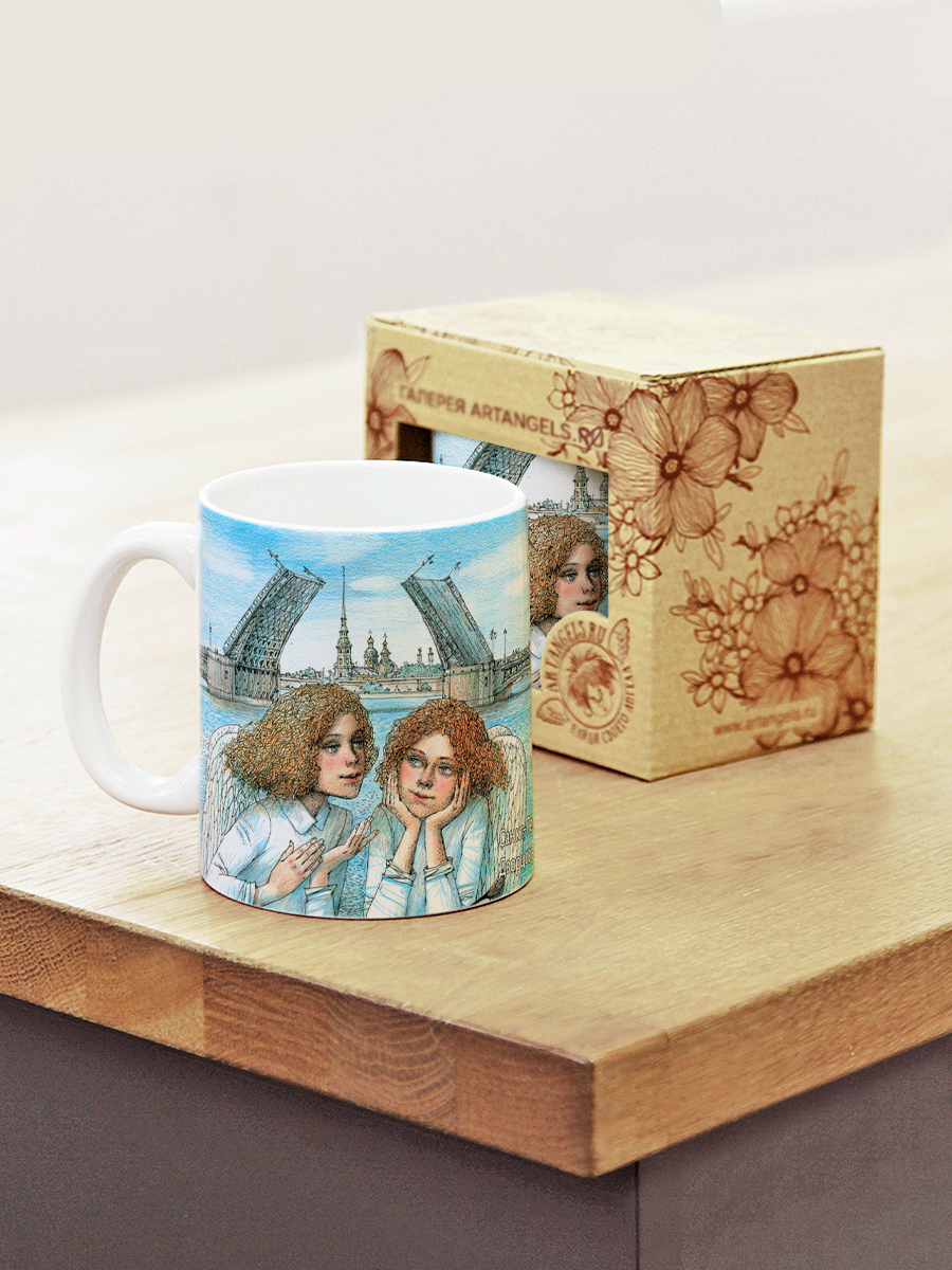 Керамическая кружка с ангелами, в подарочной крафтовой коробочке.