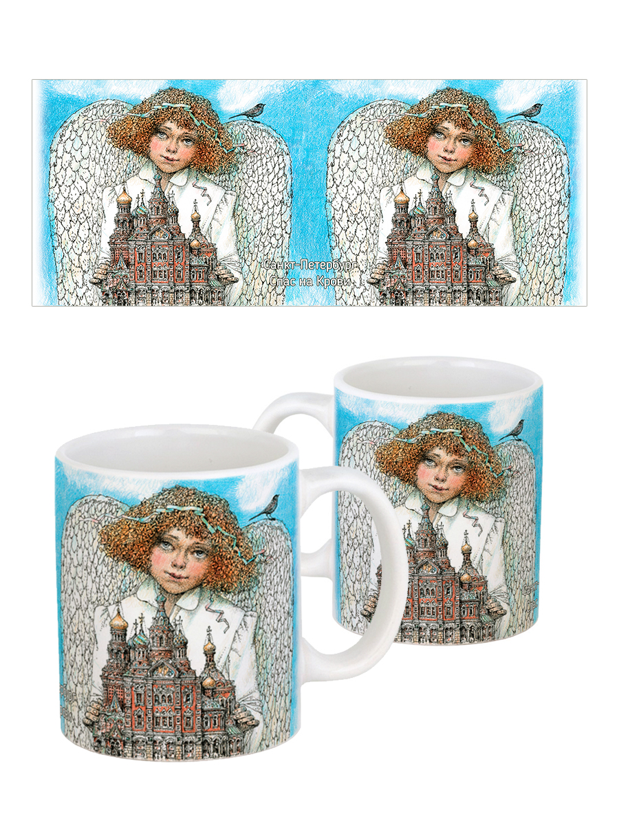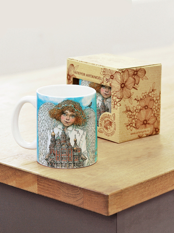 Керамическая кружка с ангелами, в подарочной крафтовой коробочке.