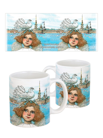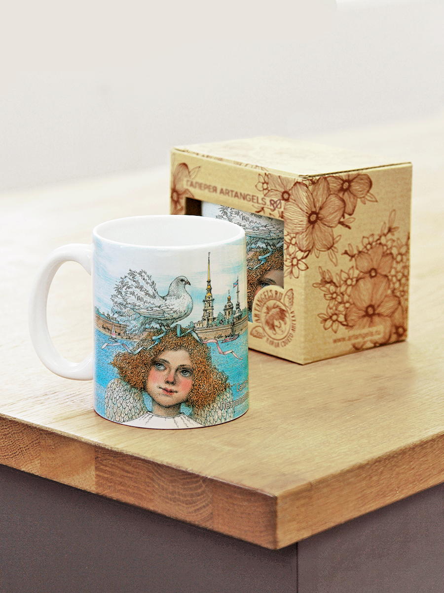 Керамическая кружка с ангелами, в подарочной крафтовой коробочке.