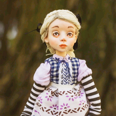 Автор: Носкова Е.Размер: 35 смМатериалы: запекаемый пластик living doll, ткань, нитки мулинеУход: бережное отношение, сухая чистка,