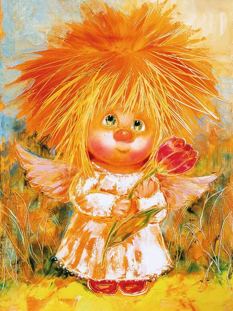 "Ангел-хранитель вечной юности" Живопись 40х50 см