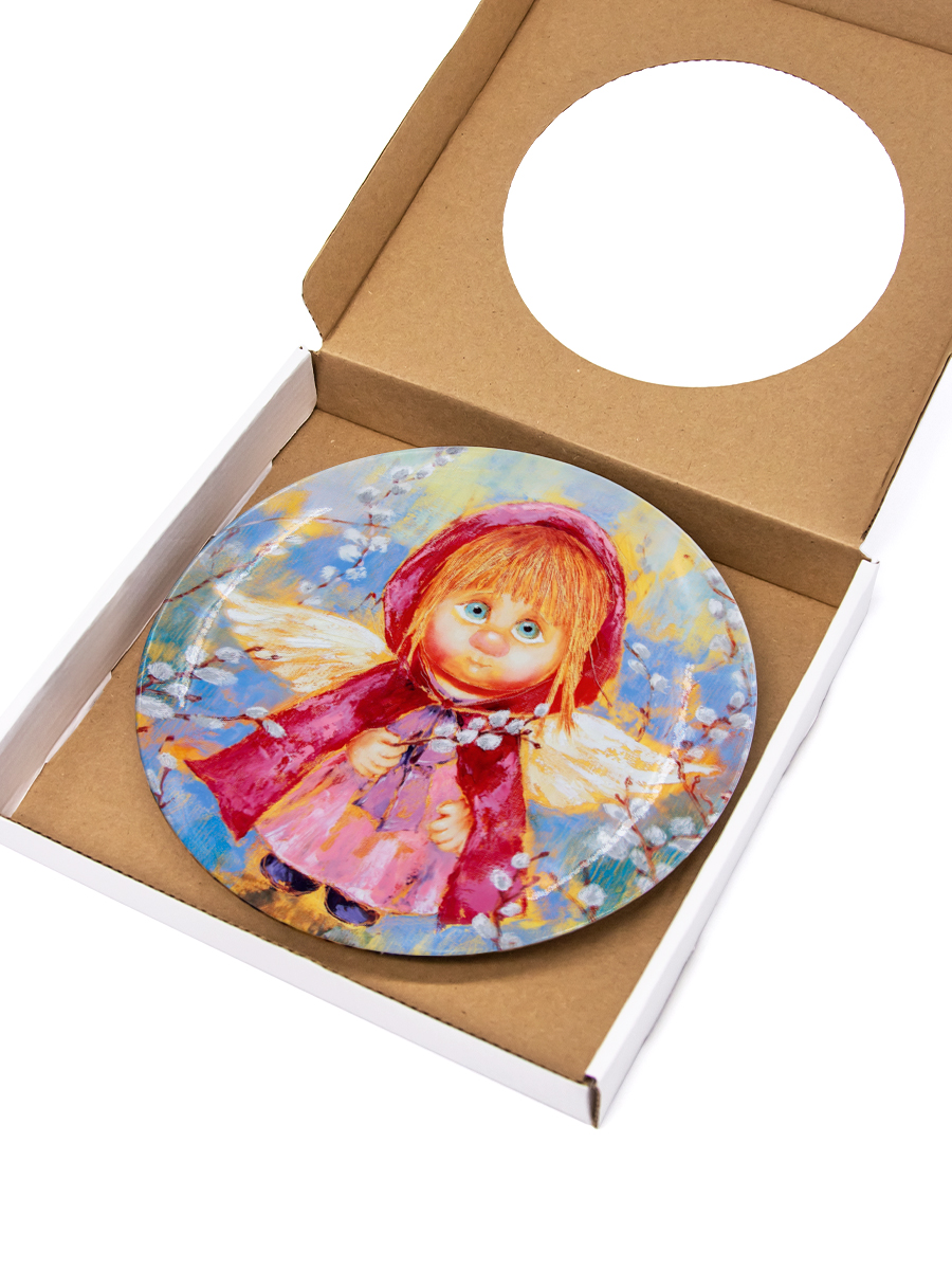 Тарелка из классического твердого фарфора в подарочной упаковке с крючком.