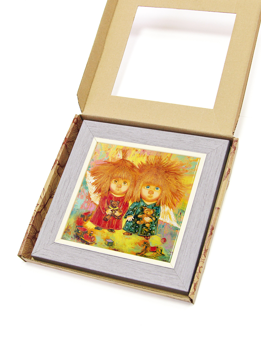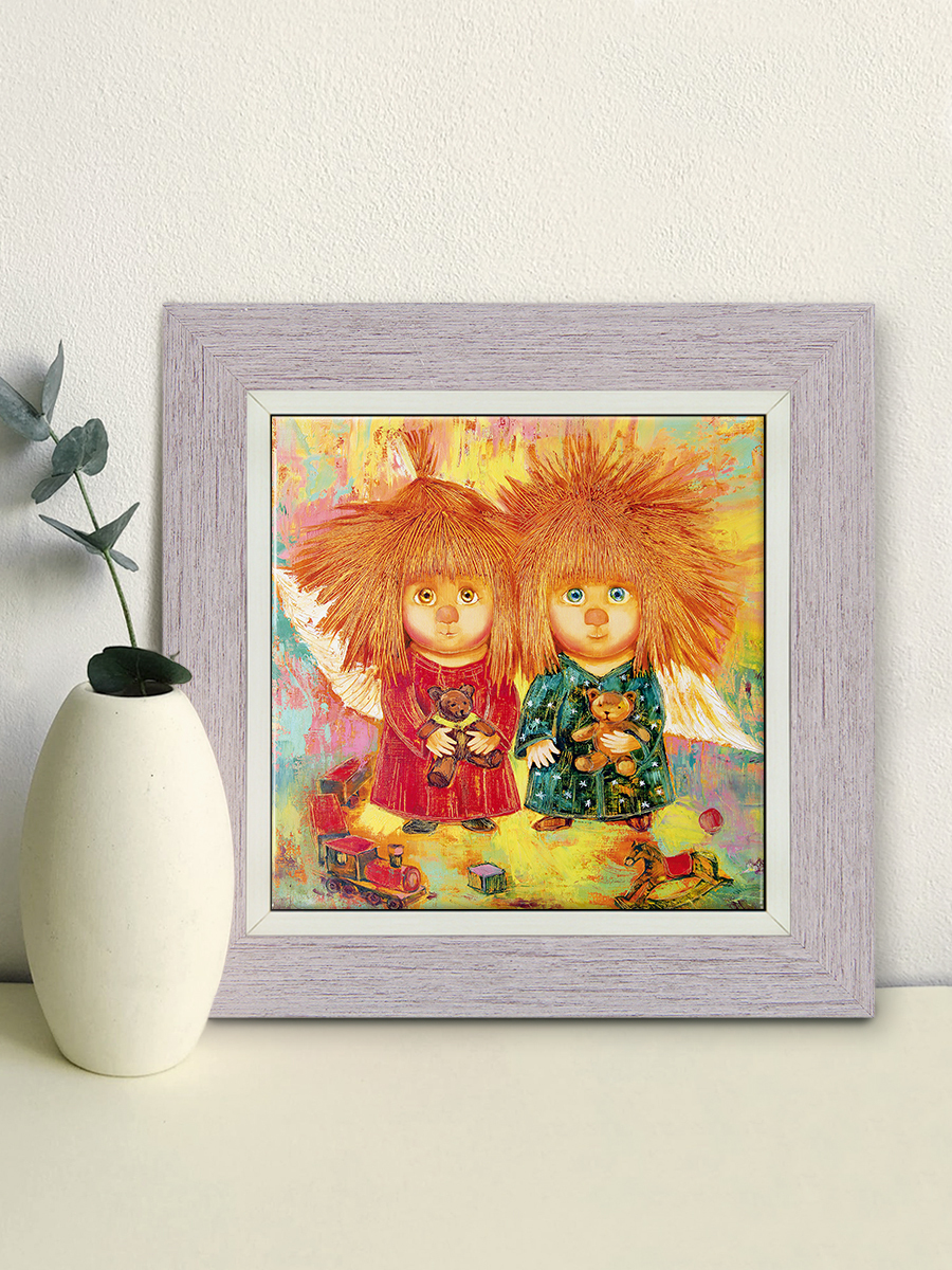 "Ангелы счастливой семьи" Керамика в багете 15х15 см
