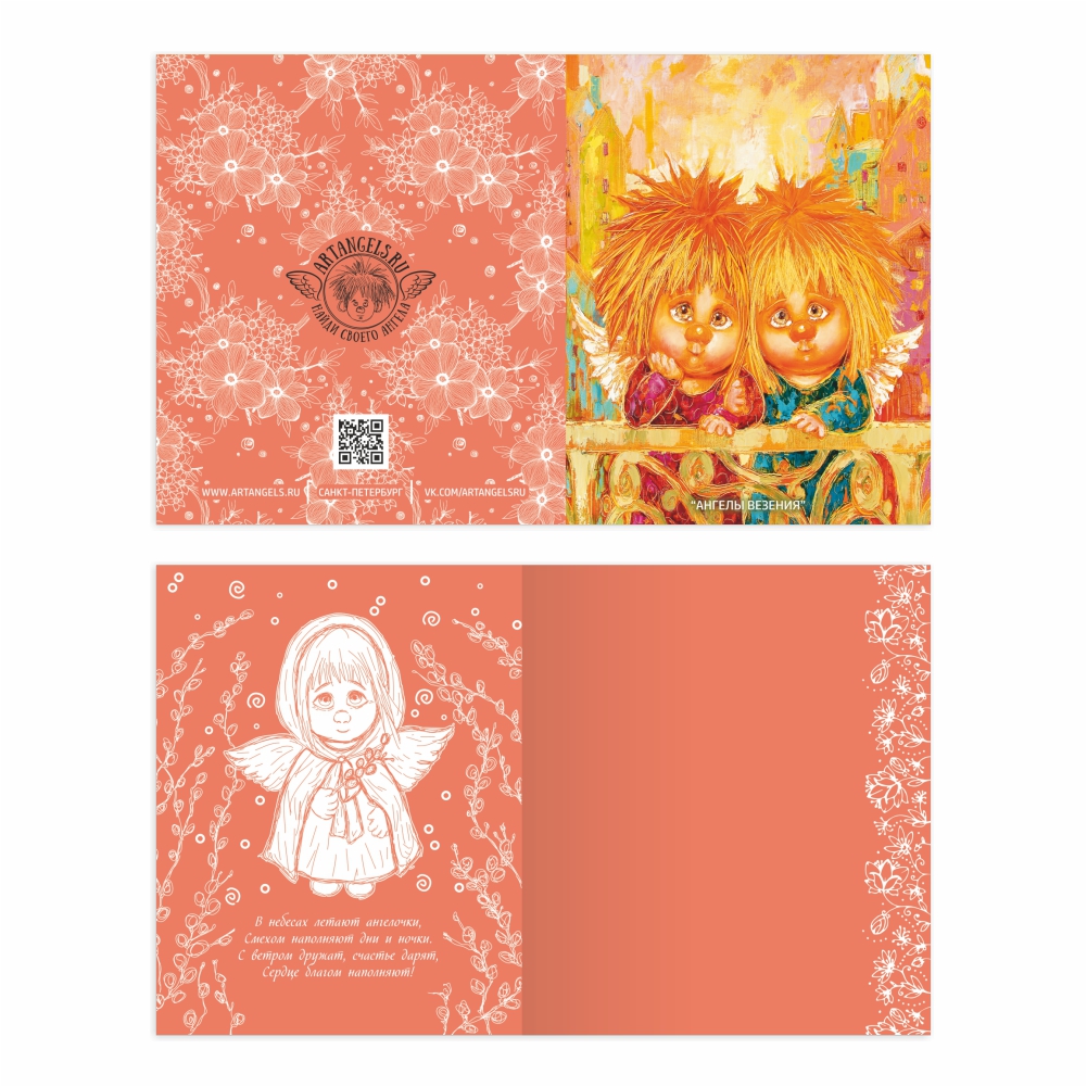 "Ангелы везения" Открытка двойная 15х17 см