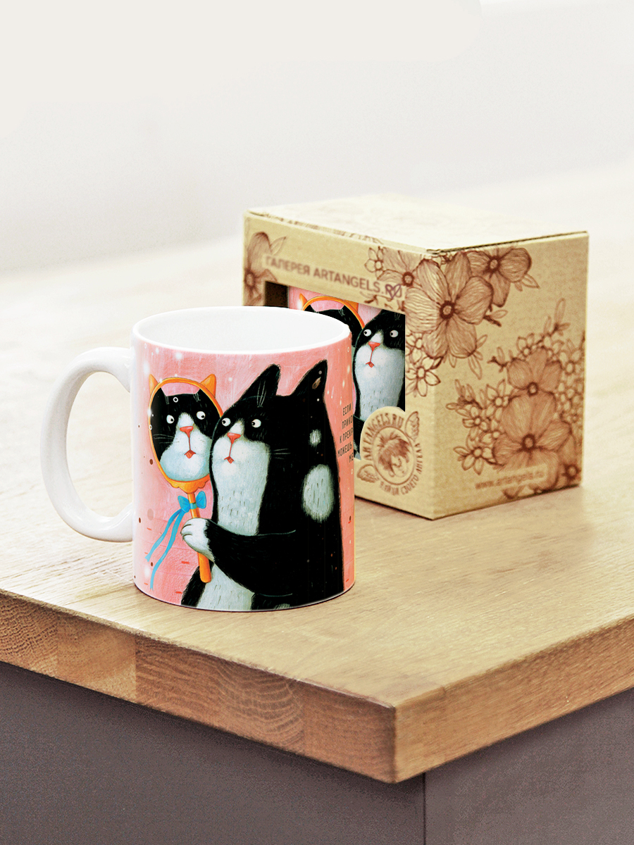 Керамическая кружка с ангелами, в подарочной крафтовой коробочке.