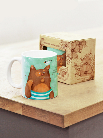 Керамическая кружка с ангелами, в подарочной крафтовой коробочке.