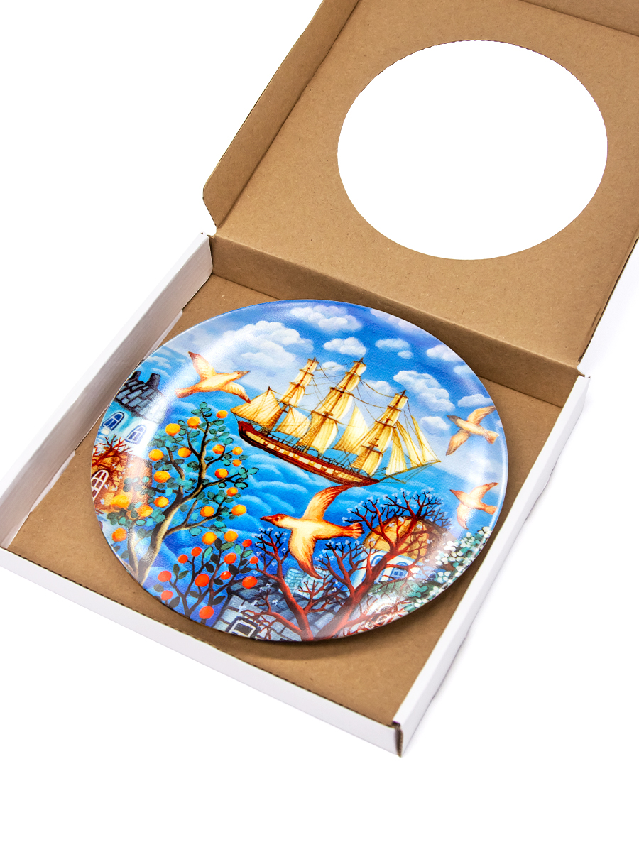 Тарелка из классического твердого фарфора в подарочной упаковке с крючком.