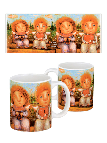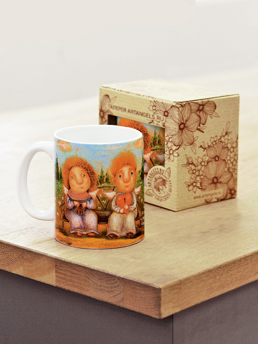 Керамическая кружка с ангелами, в подарочной крафтовой коробочке.
