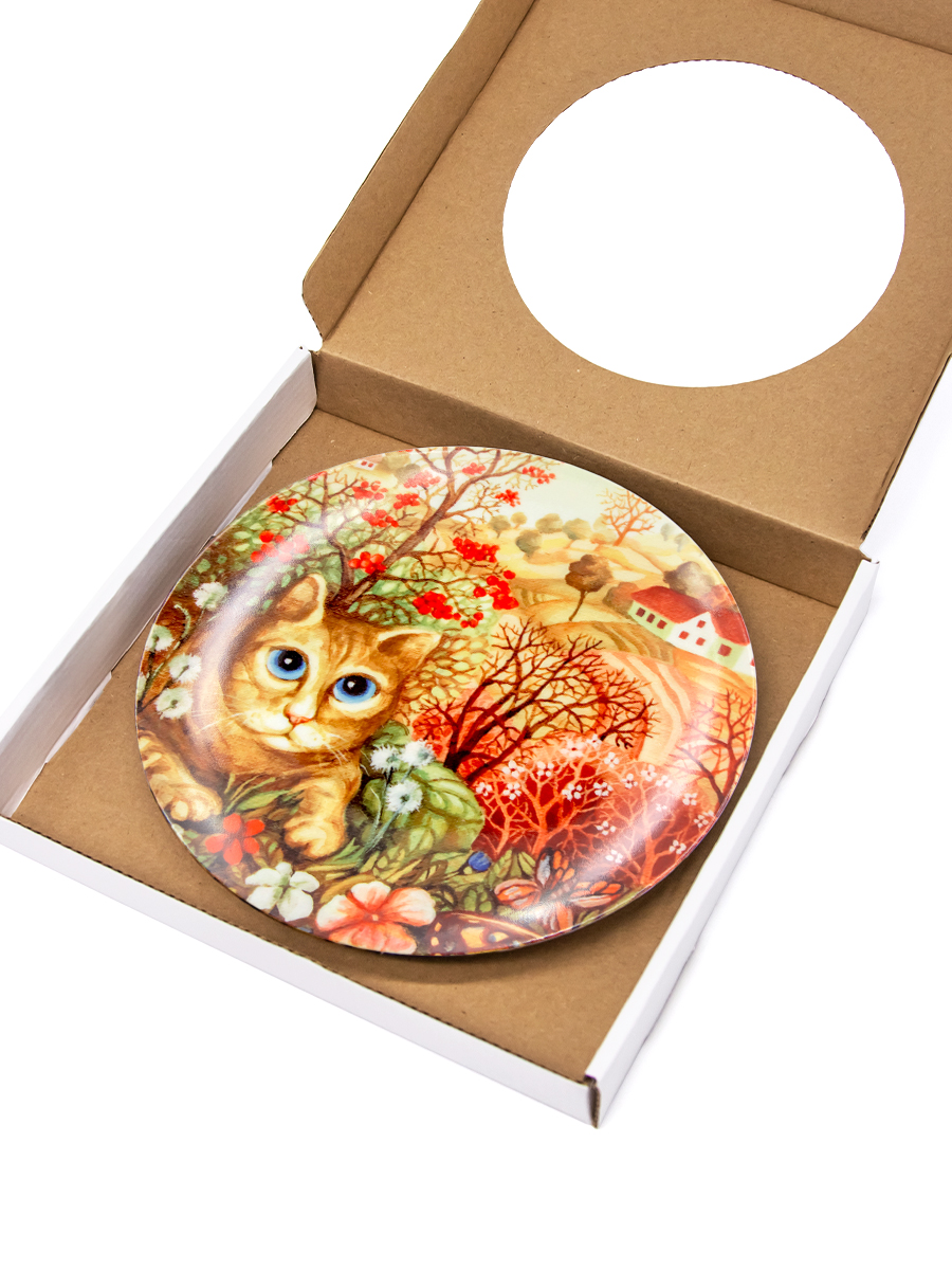 Тарелка из классического твердого фарфора в подарочной упаковке с крючком.
