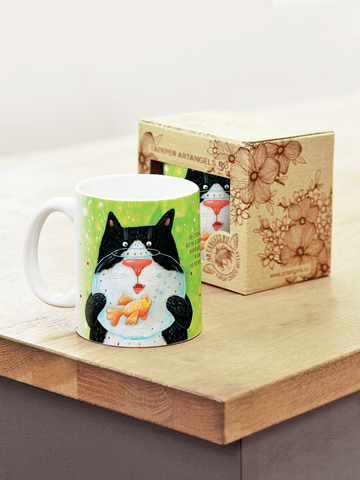 Керамическая кружка с ангелами, в подарочной крафтовой коробочке.