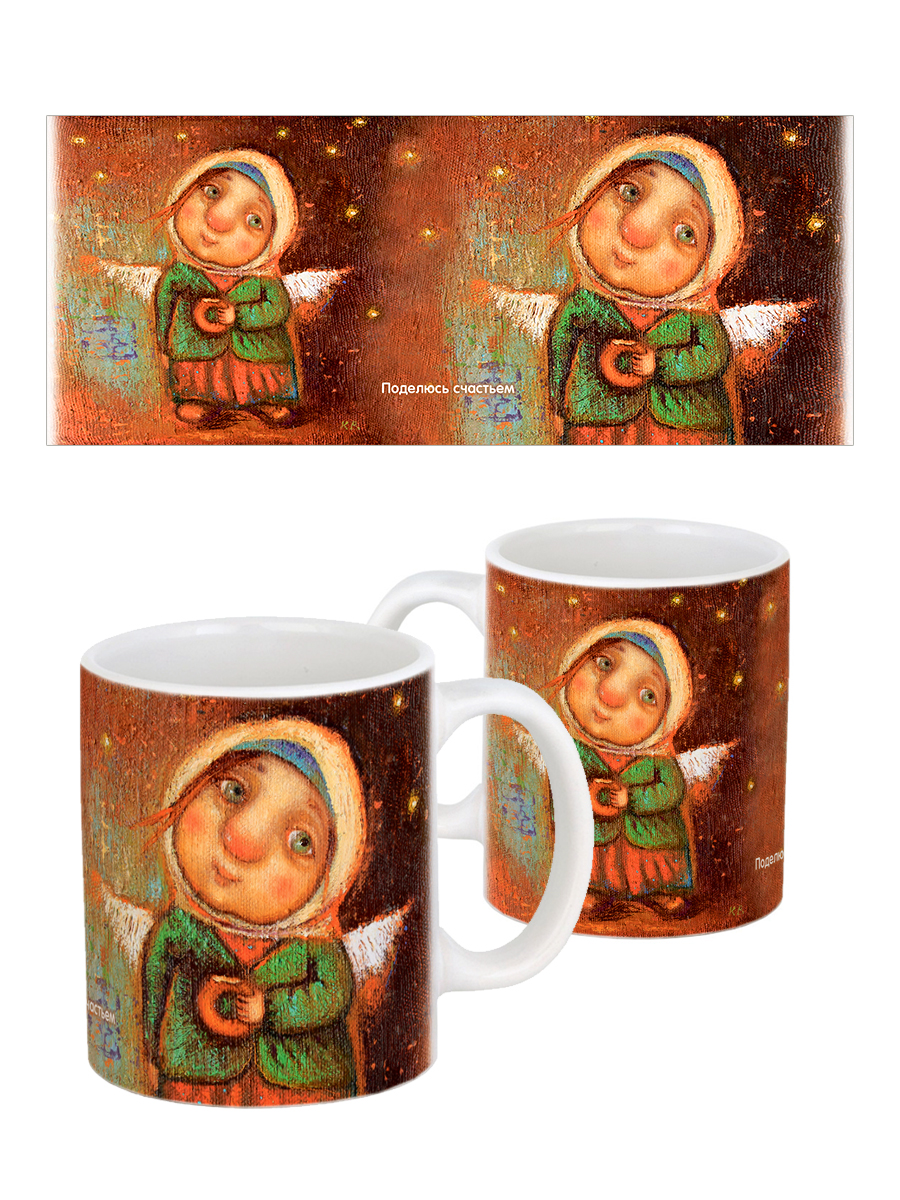 Керамическая кружка с ангелами, в подарочной крафтовой коробочке.