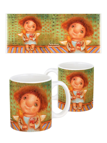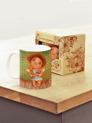 Керамическая кружка с ангелами, в подарочной крафтовой коробочке.