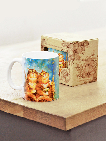 Керамическая кружка с котами, в подарочной крафтовой коробочке.
