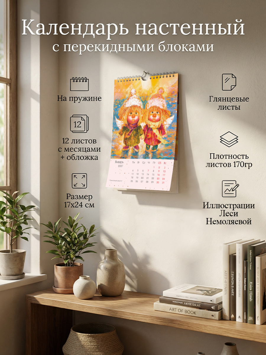 Авторский настенный календарь с ангелами. 12 изображений, подобранных тематически.