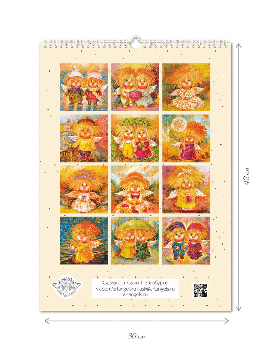Авторский настенный календарь с ангелами. 12 изображений, подобранных тематически.