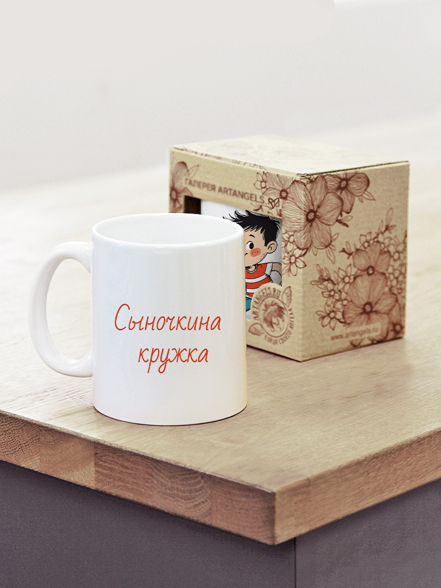 Керамическая кружка с ангелами, в подарочной крафтовой коробочке.